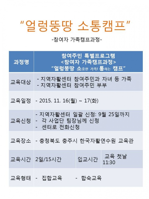 "얼렁뚱땅 소통캠프" <참여자 가족캠프과정> 참가자 모집