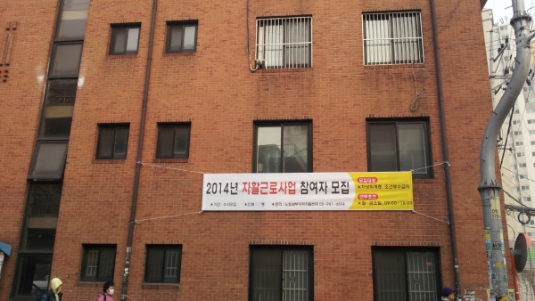 2014년 자활근로참여자 모집 현수막 설치