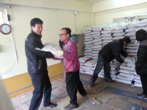 2013.03.20 / 2013.03.25 노원구청 사회보장과 자활지원팀 조한배팀장님이 현장방문해서 정성배달 사업단 참여자, 자활센터실무자와 함께 양곡하차 및 적재업무를 해주셨습니다.